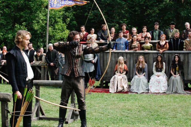 Reign — “Hearts and Minds” Pictured (L-R): Toby Regbo as Prince Francis, Manolo Cardona as Tomas, Jenessa Grant as Aylee, Celina Sinden as Greer, Caitlin Stasey as Kenna and Adelaide Kane as Mary, Queen of Scots — Photo: Marni Grossman/The CW — © 2013 The CW Network, LLC. All rights reserved.