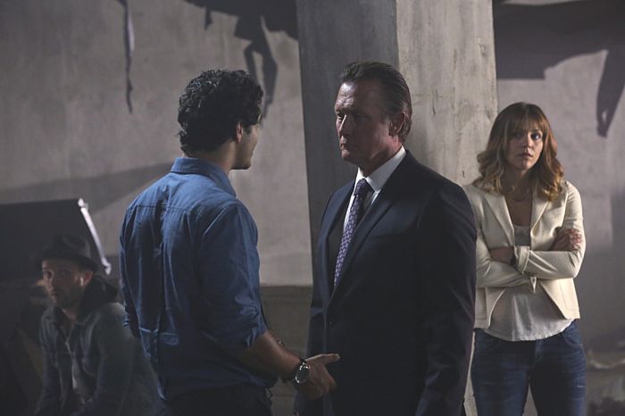 “A Cyclone” — After Team Scorpion fails a military training mission, they are determined to prove their worth to Cabe and Homeland Security when a bomber threatens to take out the internet infrastructure of the entire Southwest, on SCORPION, Monday, Oct. 6 (9:00-9:59 PM, ET/PT), on the CBS Television Network. Pictured: Elyes Gabel as Walter O’Brien. Robert Patrick as Agent Cabe Gallo, Katharine McPhee as Paige Dineen. Photo: Michael Yarish/CBS ©2014 CBS Broadcasting, Inc. All Rights Reserved